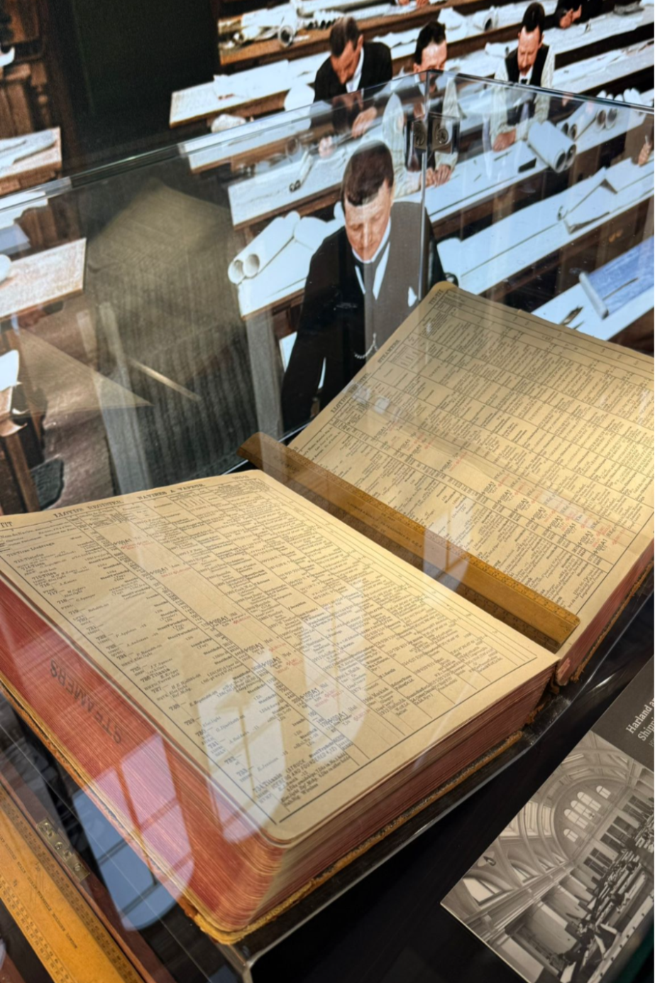 Conception and Build – we saw office registers, yellow pulleys, photographs from when the design was being made, statistics that put everything into perspective.