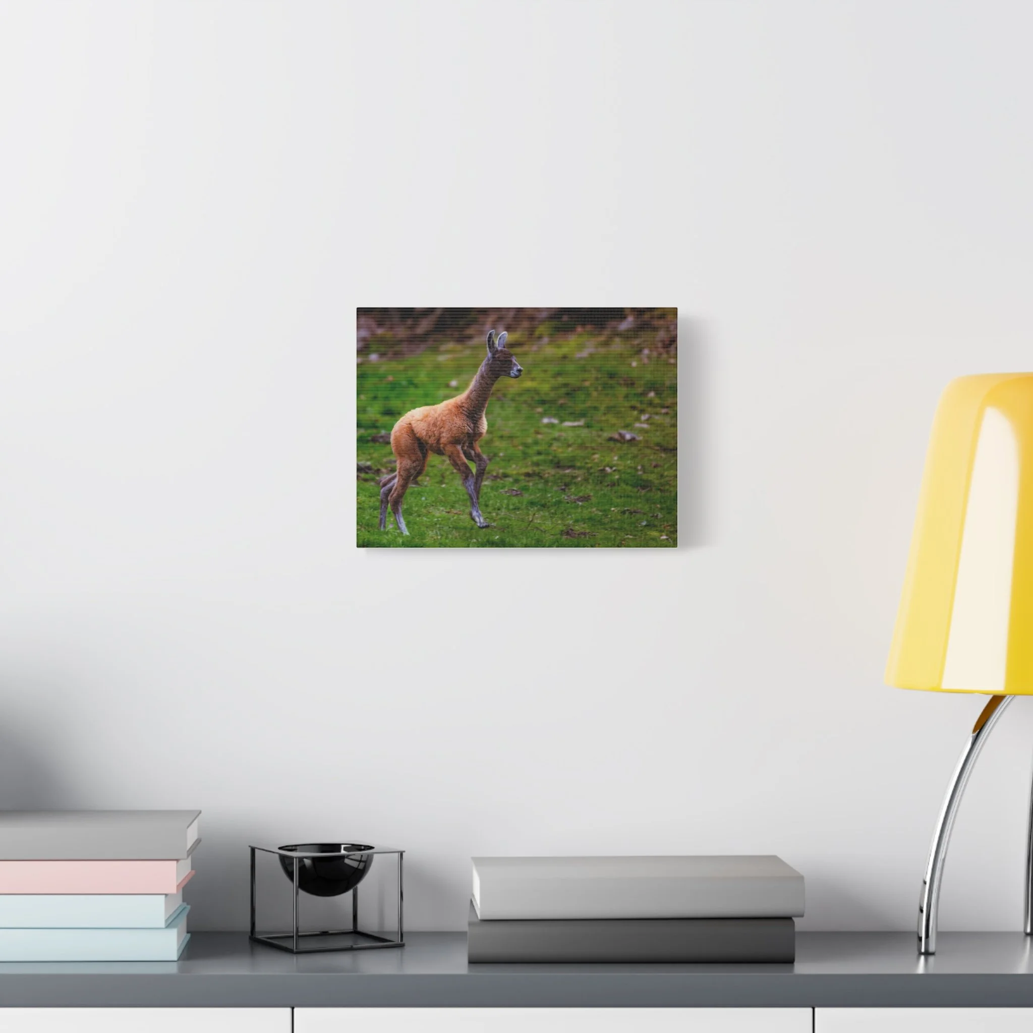 When you look at this canvas, imagine the hush of damp grass underfoot and a lone gentle creature pausing to take measure of its world. The muted matte surface pulls you in without shouting, so the moment becomes part of your daily view—comforting company during slow mornings or quiet evenings. It blends with rustic and modern interiors alike, giving rooms an organic, collected feel that suggests time spent outdoors rather than staged decor.